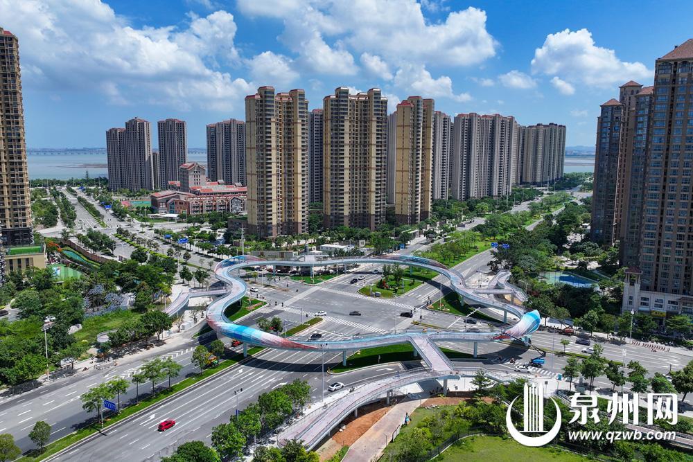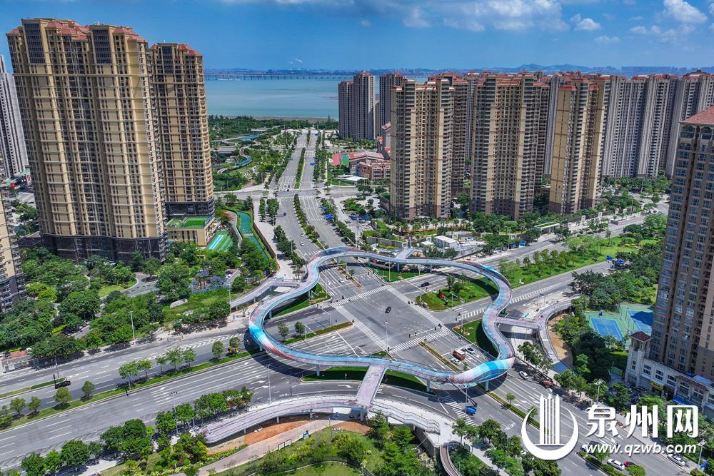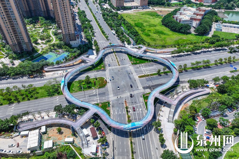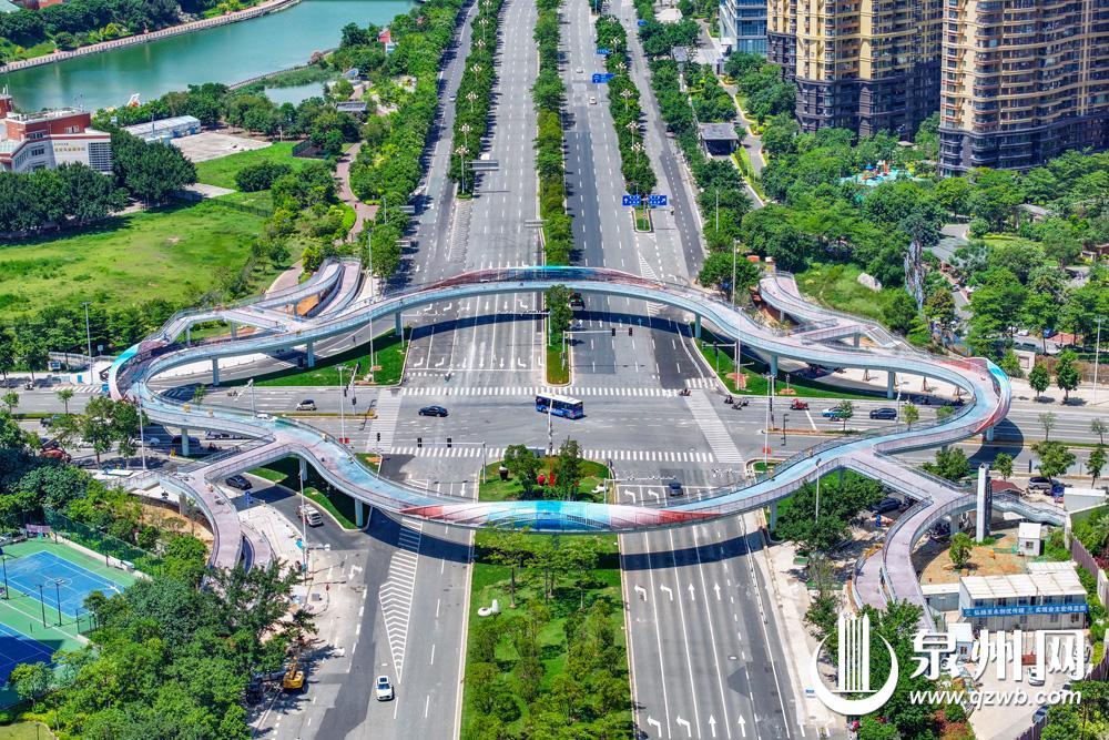 泉州市区东海大街至中央商务区立体步行连廊工程(以下简称“天桥”)建设接近尾声。该天桥位于东海大街与滨海街交叉口,由主桥、连廊和梯坡道等组成,呈现四瓣花造型,是衔接东海中央商务区高品质慢行系统的重要一环。值得一提的是,滨海街往东通向在建的百崎通道,日后车流量势必加大,天桥建成后将缓解东海大街与滨海街交叉口交通压力,减少车道与人行交通相互干扰。(融媒体记者陈起拓 摄)