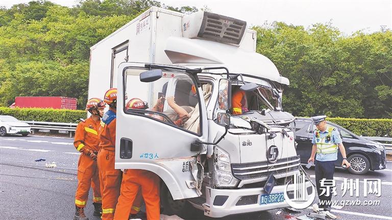 泉州网6月19日讯(融媒体记者傅恒 通讯员杨福 郭云霞 文/图)6月17日14时13分许,沈海高速枫亭往泉港方向距离泉港收费站500米处,一辆小货车与大货车相撞,一名人员被困。接警后,泉港区南埔消防救援站立即出动救援力量赴现场处置。