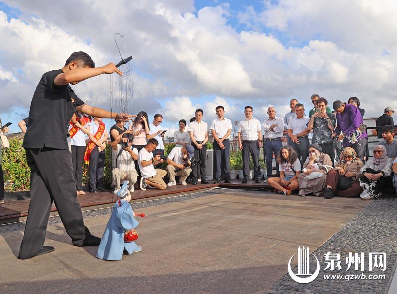 昨日下午5时许,泉州申报世界遗产主翻译官、海丝泉州推荐官曾国恒率先向现场外籍嘉宾介绍并展示了《外籍人员在泉服务手册》和《240小时过境免签游泉州旅游指南》核心内容,从政策解读到生活指引,为外籍人士在泉生活旅游提供全方位信息支持。随后,西街游客服务中心三楼天台变身“非遗剧场”。泉州提线木偶戏《小沙弥下山》以细腻的指尖技艺惊艳亮相,只见小沙弥头戴僧帽,在艺人的操控下灵动行走,时而挠头憨笑,时而跳跃腾挪。外籍嘉宾屏息凝视,当小沙弥做出一个个高难度动作时,现场爆发出阵阵掌声。紧随其后还有南音表演,婉转的旋律让嘉宾们忍不住纷纷掏出手机记录。