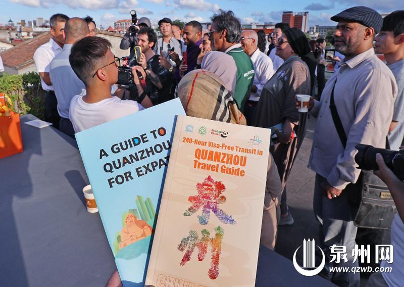 现场发布了英文版《外籍人员在泉服务手册》和《240小时过境免签游泉州旅游指南》,入境航班的外籍旅客和在泉外籍人员代表上台接受赠送的手册和指南。其中,《外籍人员在泉服务手册》为在泉外籍人士提供政务、生活、商务等全方位资讯,《240小时过境免签游泉州旅游指南》则为过境游客精心规划世遗之旅,涵盖政策宣传、住宿、旅游线路、旅行社、景区推荐等相关信息。在手册和指南的帮助下,外籍人员将能够更便捷、更深入地领略泉州的千年古韵与现代活力。