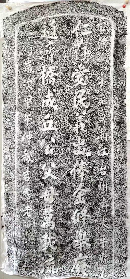 惠安县普查队接到线索后第一时间前往调查。据普查队现场勘测,该桥碑部分碑身埋于地下,露出地表的部分通高1.73米、宽0.8米、厚17厘米,碑刻楷书竖刻:“仁存爱民义出俸金修举废 通济桥成丘公父母万载流□”。两边分别落款“公□□ 字无寅 浙江台州府太平县人”“嘉靖岁次甲午仲秋吉 耆老 黄清□ 谢时昭 □□昭……”等字。在辨认碑记上的字体,确认其为通济桥桥碑后,普查队邀请专家进行拓片留底。