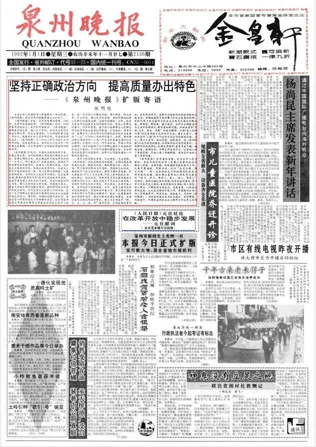 ● 1月1日,《泉州晚报》正式扩版,4开4版扩版为对开4版。