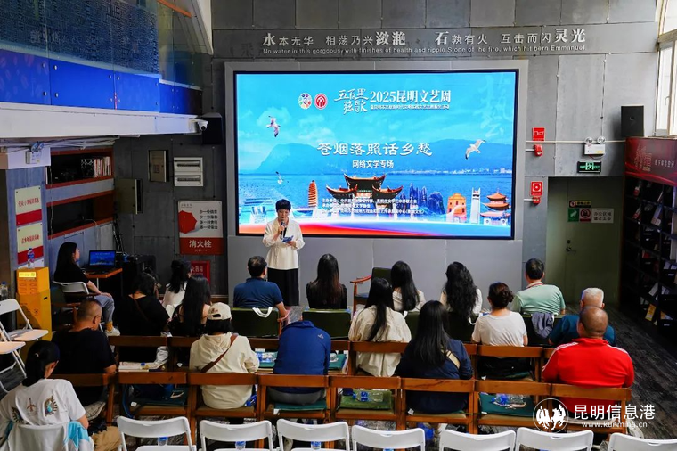 “螺洲铭——昆明作家散文分享研讨会”著名作家、评论家、文学爱好者齐聚,共话昆明散文的成就和发展现状,散文寻根,通过诵读《昆明的雨》《大观楼长联》等经典,探讨滇池书写的“生命在场感”。“苍烟落照话乡愁”网络文学专场,四位嘉宾围绕滇池历史文化、个人创作经历以及各自笔下的乡愁故事开展交流分享,深入挖掘滇池文化内涵,探讨新时代网络文学创作与绿色发展理念的融合路径。