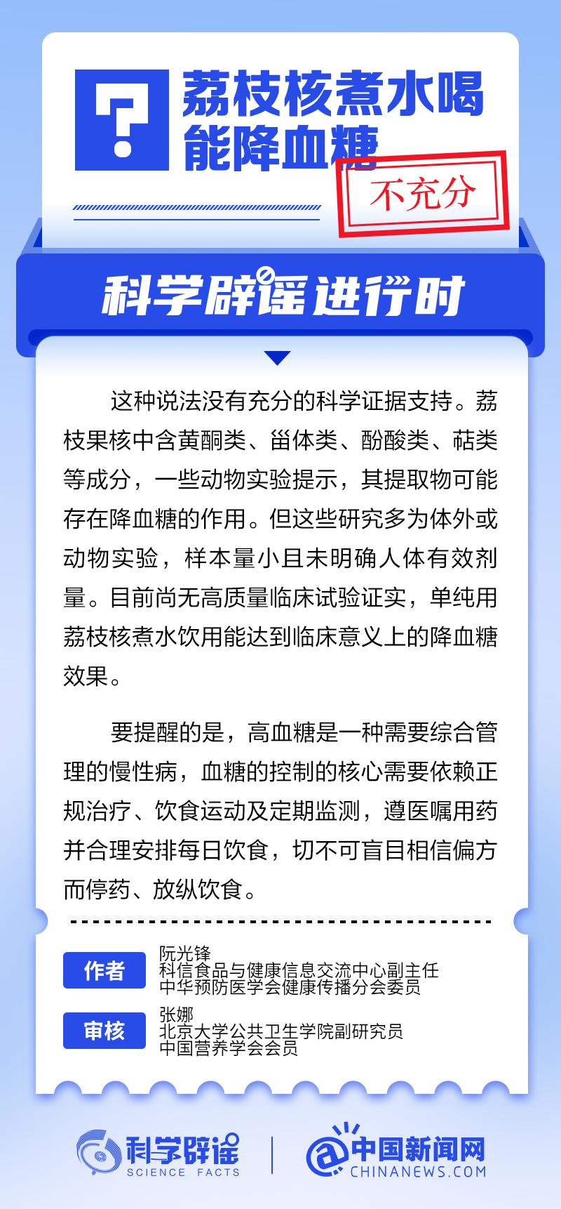 中新网7月3日电 荔枝果核中含黄酮类、甾体类、酚酸类、萜类等成分,一些动物实验提示,其提取物可能存在降血糖的作用。但这些研究多为体外或动物实验,样本量小且未明确人体有效剂量。目前尚无高质量临床试验证实,单纯用荔枝核煮水饮用能达到临床意义上的降血糖效果。(来源:@科学辟谣 中国新闻网微博)