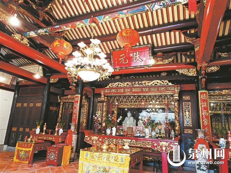 泉州吴氏合族大宗祠(即“东观西台”)大殿神龛上方悬挂着吴鲁的“状元”匾额