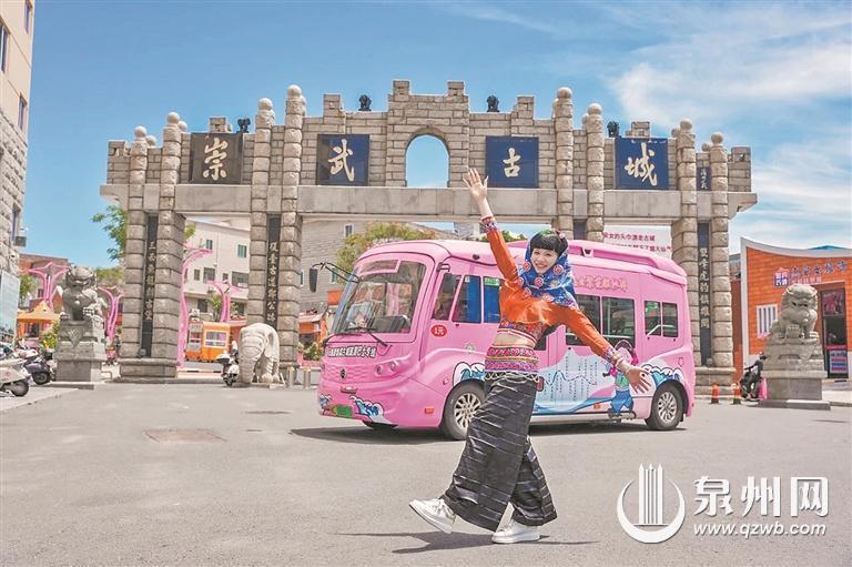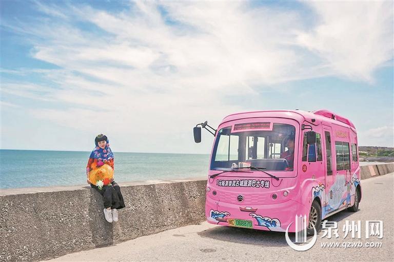 泉州网7月5日讯 (融媒体记者林志安 通讯员游雯星 文/图)粉萌的巴士串联起夏日的滨海风光,美丽的惠安女带你邂逅千年古城的海浪。7月4日,由惠安县文旅局、交发集团、公交公司共建运营的崇武古城旅游巴士专线正式运营。旅客花1元即可畅游25公里全程,开启沉浸式的惠安文化之旅。