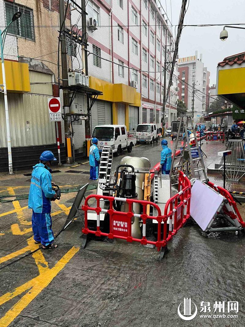 “中午过后又下暴雨,水淹到半桶水的高度了,希望南俊路(东街—二郎巷)市政提升工程赶紧完工,解决困扰我二十多年的难题。”在二郎巷开桶装水店的吴女士忙着用扫把将积水扫出店面,无奈地说。记者看到这里的水位较南俊北路积水路段更高一点,没过成年人的小腿,一辆大型“龙吸水”排水抢险车停在泉州师院附小的后门,现场铺设了一条长达200米的水带,正将二郎巷暗渠里的水加速排至东环城河,多名泉州水务集团市政工程分公司的工作人员在现场执勤。下午6时许,雨势减小,抽排工作也接近尾声,“今晚我们会安排人员通宵值守,密切关注水位情况,一旦水位上涨及时抽排。”工作人员洪先生说。