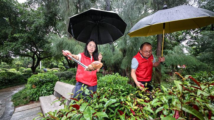 市水务集团市政分公司工作人员在二郎巷路段排水(受访者供图)