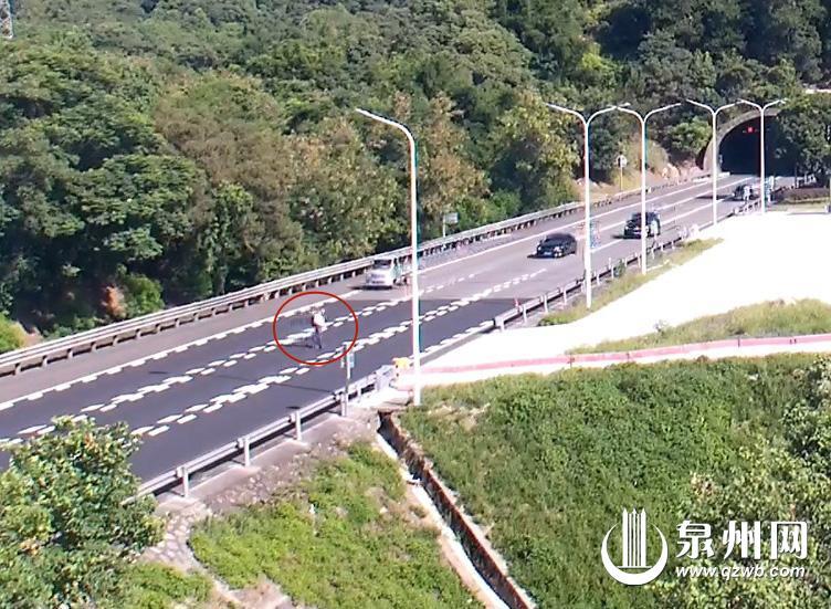 老人横穿高速