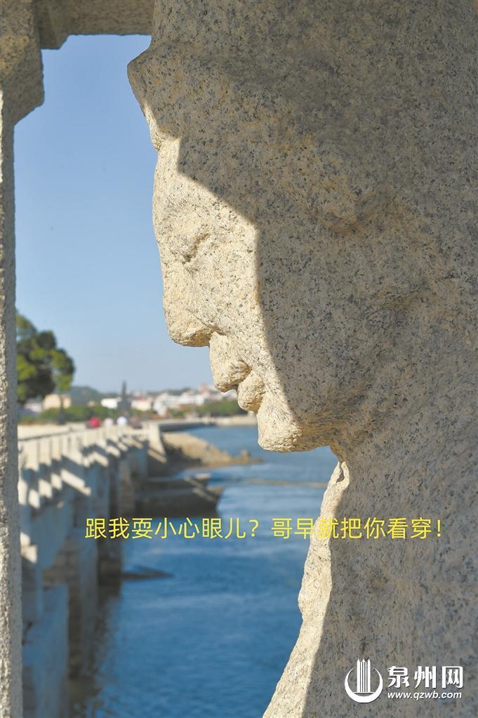 泉州洛阳桥上的护桥石将军则相对要严肃得多,瞧他正向前探肩俯身,恰似正在盘问过往行人。网友也是别出心裁为其发声:“跟我耍小心眼儿?哥早把你看穿!”一副严阵以待的形象。洛阳桥建成于北宋。明嘉靖三十七年(1558),倭寇常循洛阳桥入窜泉州城。当时佥宪万民英下令在洛阳桥中亭筑“新城”御倭,并改桥亭为寨隘。所以这些石将军守桥严谨、尽职,倒也与历史有契合之处。