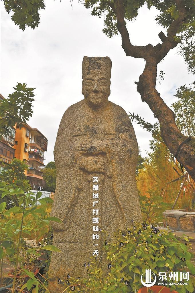 “又是进厂打螺丝的一天。”位于泉州古榕巷内南外宗正司遗址前的文官石像生,仿佛正用“打工仔”的表情告诉世人,自己在此站岗已历数百年风吹雨打。南外宗正司是一处掌管宋代外居宗室事务的官署和迁居泉州的皇族居住的机构。现在是泉州作为世遗之城的代表性古迹之一。南宋时,入住泉州的赵宋皇族子弟一度多达两千余人,给泉州城带来非凡的“贵气”。这文官石像生原立于赵氏王公的陵墓前,后移至现址,迄今风采依旧,极具观赏价值。