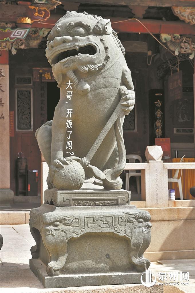 与老君岩造像招呼大家喝茶的样子形成鲜明对照的是泉州开元寺内的一头石狮子。这头古朴憨厚的石狮子咧着大嘴,仿佛正在问网友们“呷崩了吗?”(闽南语“吃饭了吗”)表情里没有一点万兽之王的霸气,只有对“干饭”的情有独钟。网友纷纷指出,这头石狮子似乎是立在寺内的龙眼树下,天然的“饭场”开局,其脑门正中还飘着一缕童发,怨不得网友都笑它“童里童气”“萌得冒泡”。
