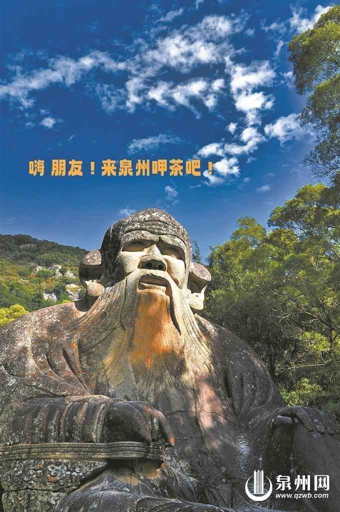 清源山的老君岩造像算得上泉州表情包的“顶流”了。这尊高大的石像是泉州雕艺的杰作之一。老君即老子,原名李耳,号聃,是春秋末期卓越的思想家、道家创始人,其代表作《道德经》是影响深远的中国古代思想著作。老君岩造像高5.63米,宽8.01米,厚6.85米。坐北朝南,背屏青山,巍然端坐,一派安详自得的样子。再看细节,石像左手按膝,右手凭几,两眼平视,双耳垂肩,表情自然。整座石像雕工精细,形态生动,须眉分明,额纹、衣褶清晰,头、额、眼、髭、须雕刻夸张而不失其意,庄重中显活泼,简约中蕴匠心,极具神韵,更显道家“天人合一、道法自然、大道至简”的庄严意境。我国所保存的古代老君石刻造像,大多是头戴冕冠、身着冕服、庄严肃穆的帝王形象,或头上挽发、身着道袍的道人形象,像老君岩造像这样慈祥欢乐、长寿老人的形象,极为罕见。网友“木票”在表情包里,为老子配发“嗨,朋友!来泉州呷茶吧!”等文字,更把老君“与人为善”的形象渲染得活灵活现。