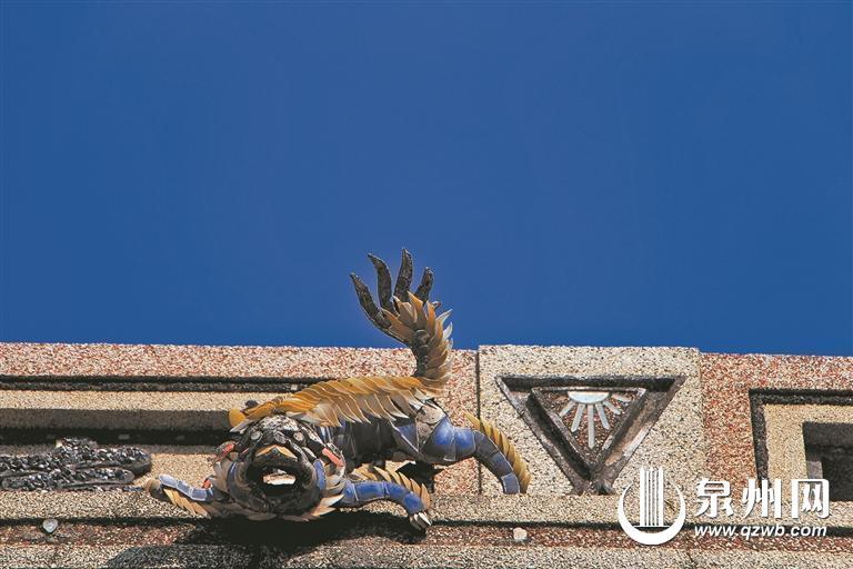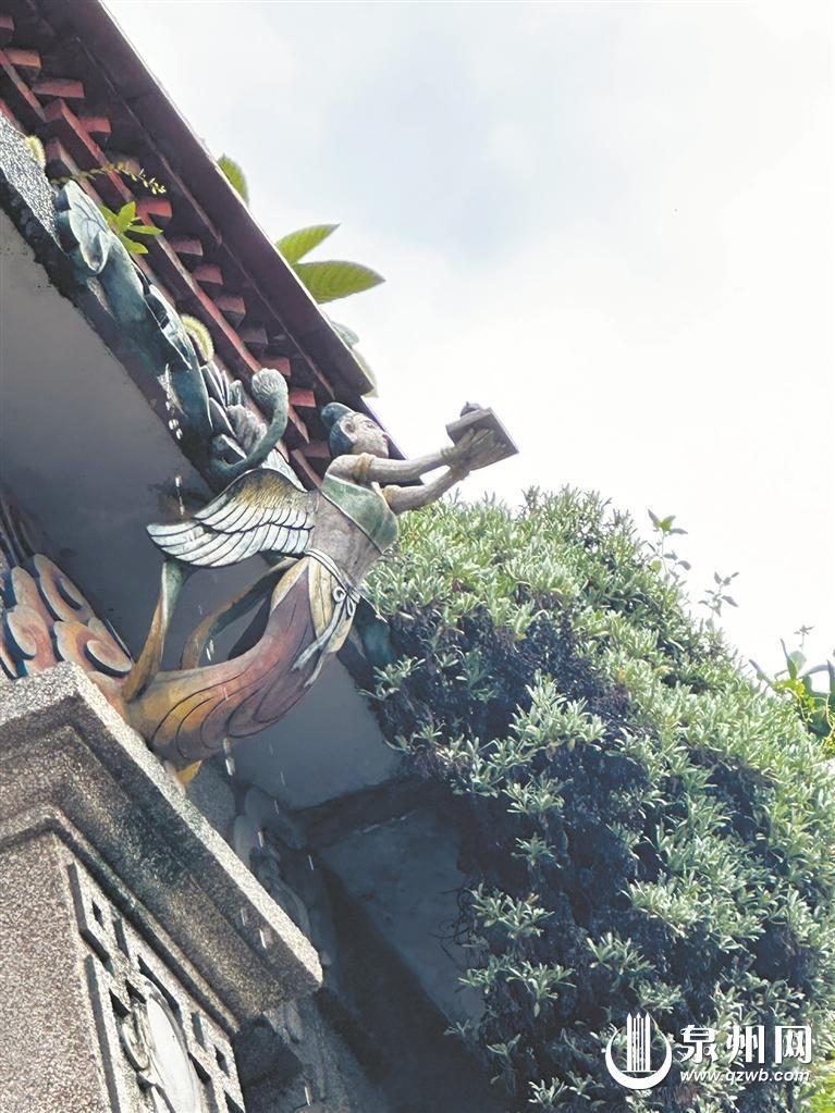 闽南古厝上的剪瓷工艺滴水兽(泉州晚报资料图片)