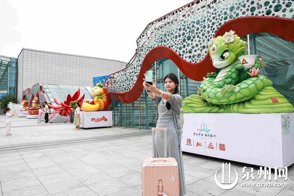 泉州网7月19日讯(融媒体记者张晓明 通讯员黄晓静 文/图)“这七条‘蛇’太可爱了,忍不住来打个卡。”昨日,来自山东的游客林女士刚走出泉州晋江国际机场航站楼,就被广场上造型各异的“七彩刺桐蛇”吸引。记者了解到,今年春节,泉州的“七彩刺桐蛇”以满满的文化创意火爆全城,如今借着暑运时机“空降”机场,将带领来自全国各地的旅客们解锁海丝文化新印记。
