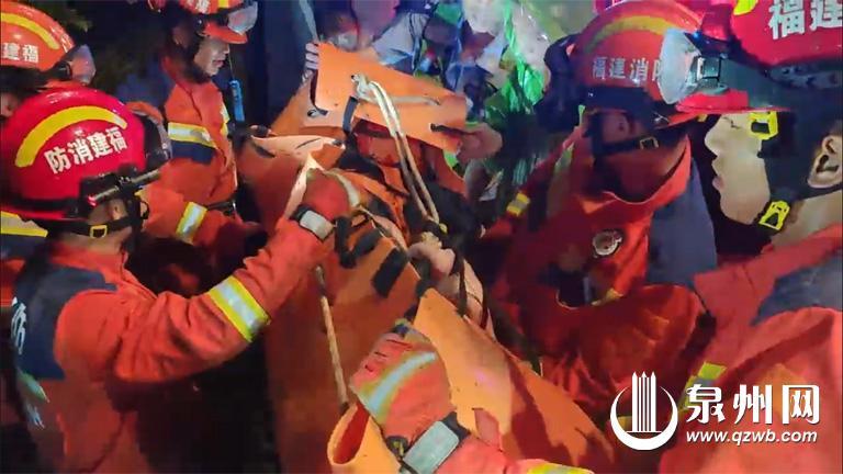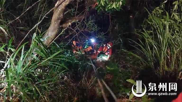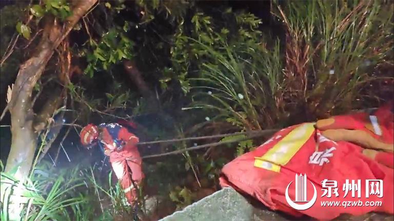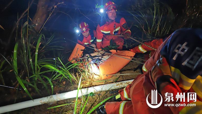 泉州网7月19日讯(记者陈明华 通讯员许振塔 苏尚煌 文/图)17日晚上6点25分左右,因雨天视线不良,路面湿滑,一辆轿车行驶到安溪县龙门镇美卿村的一条村道转弯处时,不慎翻下距路面60多米的山沟,司机被困车内。事发后,安溪消防、交警、120急救中心赶往现场救援。