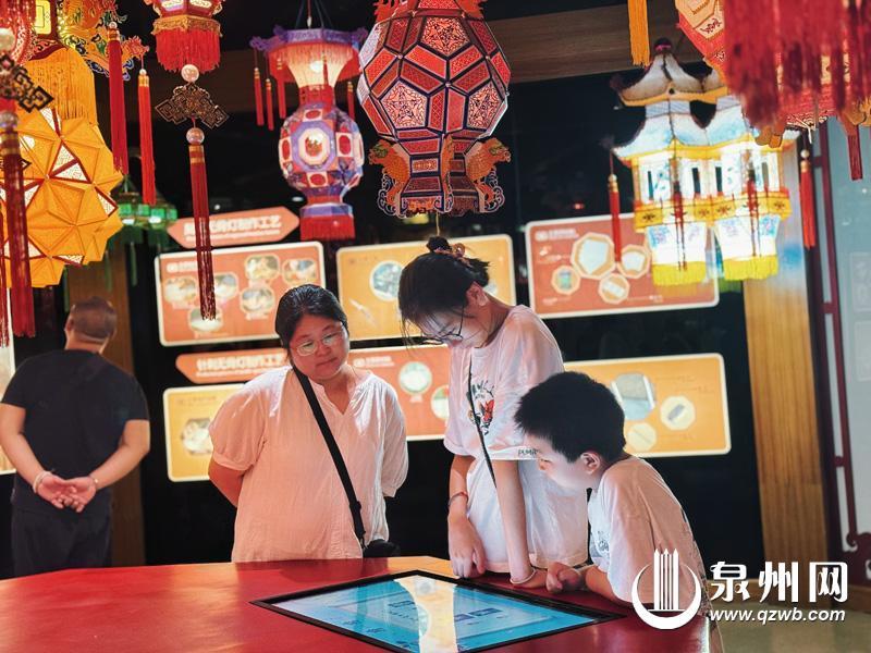 在泉州非遗馆花灯区,游客在电子屏前参与互动。(丁宇涵 摄)
