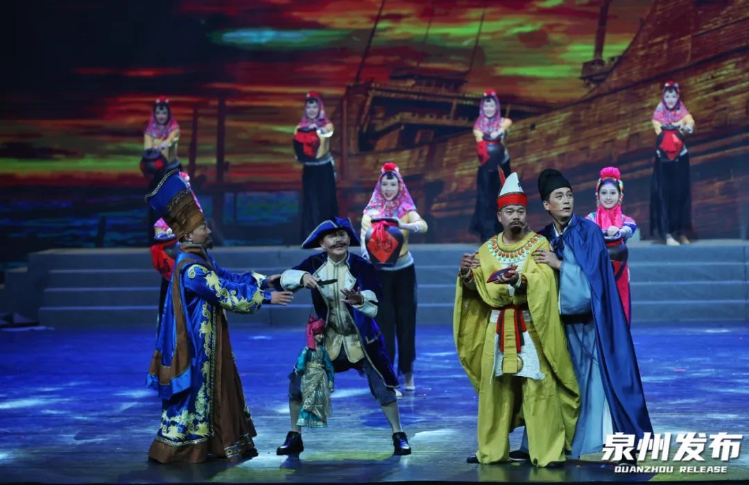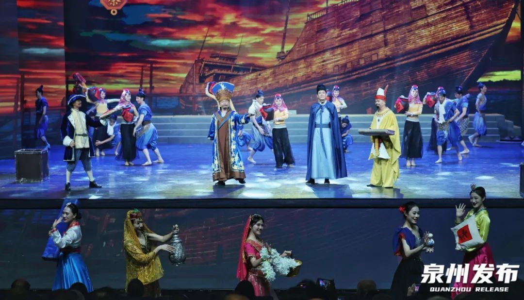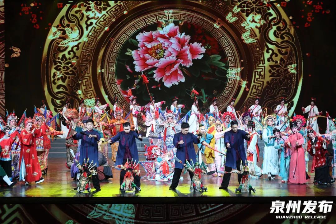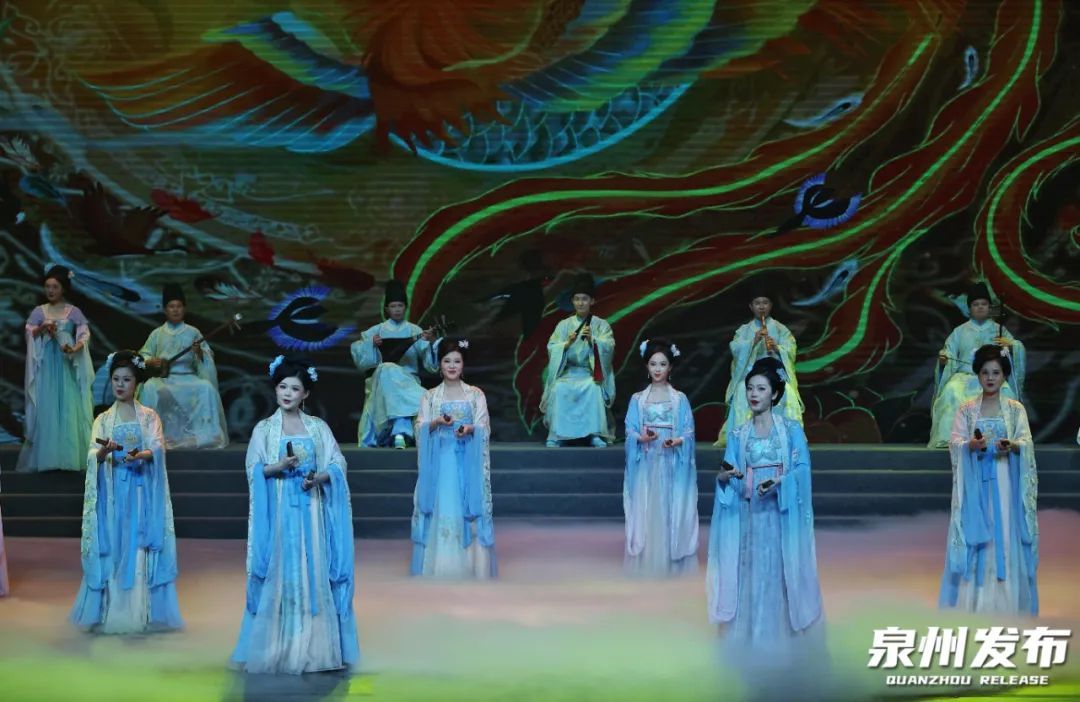 随后,音舞诗《走笔酿天涯》、戏曲荟萃《市井大观园》、南音《百鸟归巢》等一系列节目精彩纷呈,多维度、沉浸式展现了泉州的历史人文风貌,赢得海内外宾朋阵阵掌声。