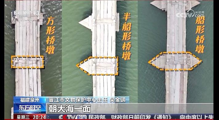 在节目中,晋江市文物保护中心主任吴金鹏向央视揭秘了古人建造这项“超级工程”的三项核心技艺,包括利用一横一竖水平交叉的木料浮力和整体的稳定性,在松软的泥沙中形成牢固的桥基,之后把石头桥墩建在上面的“睡木沉基”技术;为减缓潮水的冲击力而设计,以不同形态分解不同潮汐冲击力的“三式桥墩”;还有利用潮汐涨落,将巨型石板用船运到桥墩间,利用水涨船高让石板架到已经建成的桥墩上的“候潮架梁”技术。要知道,安平桥的石板长5米到11米,最重的有25吨,共用了2000多块。这些技艺将宋代造桥技术推向巅峰,至今仍令工程专家们惊叹不已。