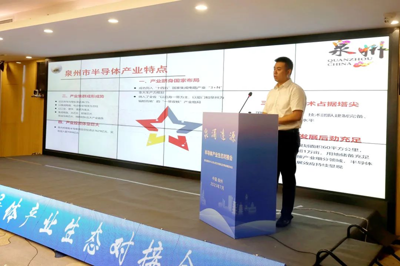 泉州半导体高新区管委会副主任邱常沛介绍泉州半导体产业的发展现状与配套优势