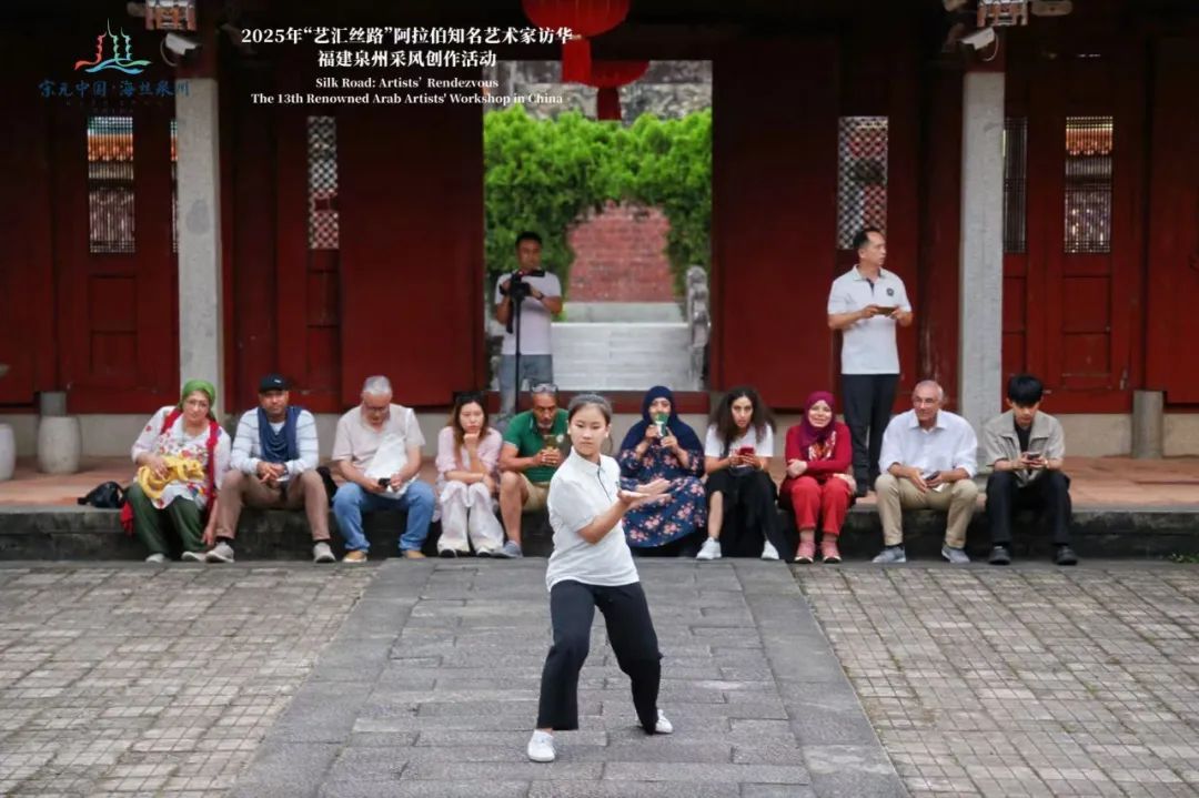 8名阿拉伯艺术家和2名埃及网红博主深入泉州古城清净寺、清源山老君岩、晋江梧林传统村落、石狮洛伽寺、安溪金谷溪岸、永春魁星书院等世遗点、古村落、景点、网红打卡点,开展采风写生和文化交流,体验了泉州美食、民俗风情、茶道香道,参与了南音、高甲戏、掌中木偶戏、白鹤拳、南少林武术等非遗快闪活动。期间阿拉伯艺术家也在泉州市区、惠安小岞崇武、石狮洛伽寺等地进行现场写生。
