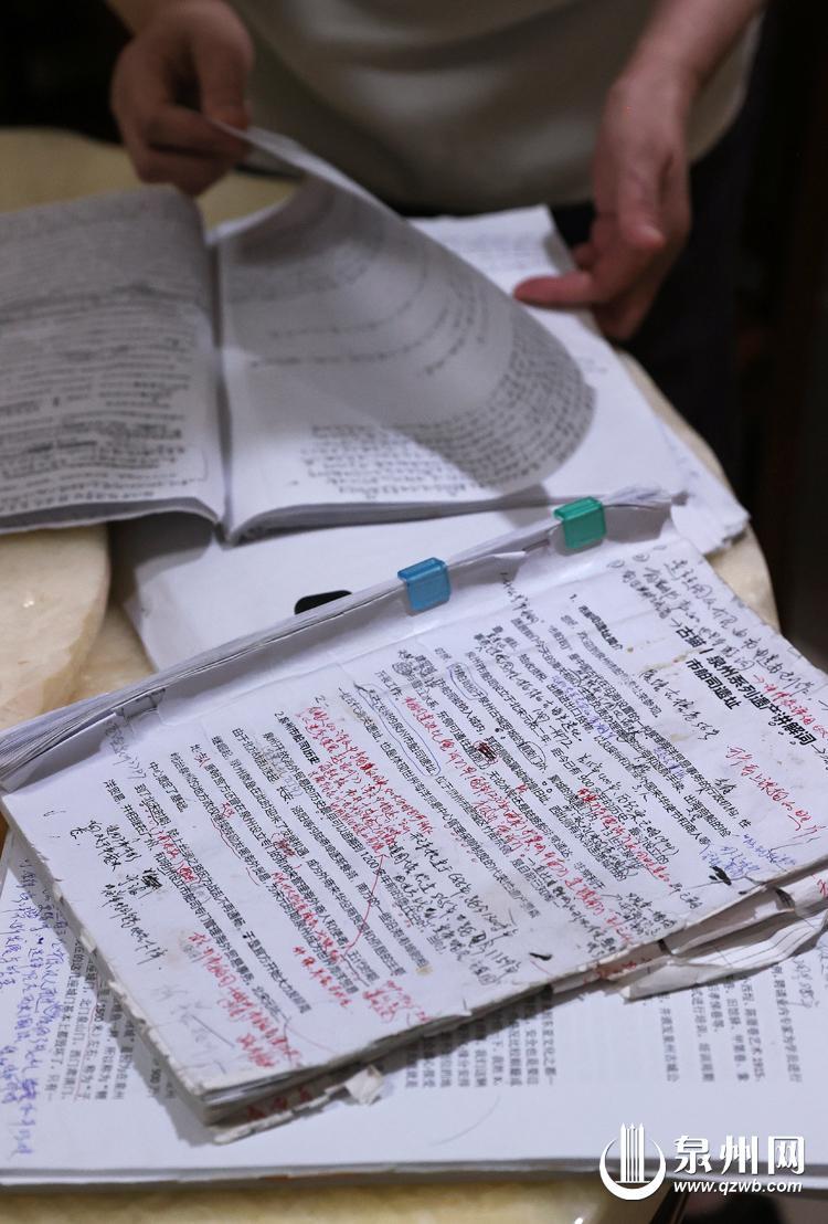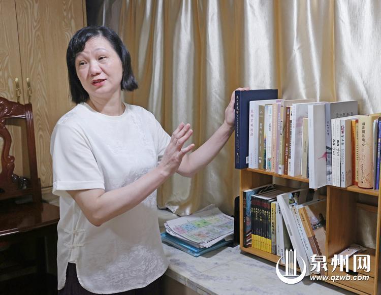 “爱了古城,就恨不得吸收它的所有知识。”培训班启动后,买书成了林夏莲和她同学的日常。同学们一有好书就相互推荐,也相互借阅。她粗算了一下,这一年她购入了40多本书籍,包括《泉州古城踏勘》《泉州·宋元中国的世界海洋商贸中心导游词》《泉州历史人物传》等。“平常在家我就是坐在餐桌写文案、读相关书籍和资料。”她指着堆满书籍和打印材料的餐桌,打趣道:“这些都是我的菜,很补。”