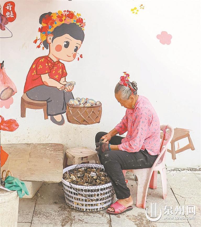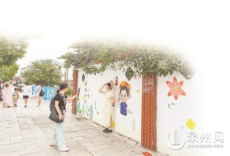 泉州网7月31日讯(融媒体记者 庄丽祥 通讯员 张婧滢 方丽群 文/图)近日,丰泽区蟳埔民俗文化村新增一批主题墙绘,为这座承载了千年海丝记忆的古老渔村注入新的活力。东海街道特邀艺术家创作,将蟳埔女、簪花围、海洋文化等元素融入画面,既保留传统韵味,又增添现代萌趣,生动再现“清晨簪花”“海边开蚝”“市场贩鲜”等渔家生活场景,烟火气十足。斑驳墙面经艺术装点焕发生机,这些无声的“讲述者”吸引着不少市民游客驻足观赏、拍照留念,让海丝余韵在光影流转中愈发鲜活。