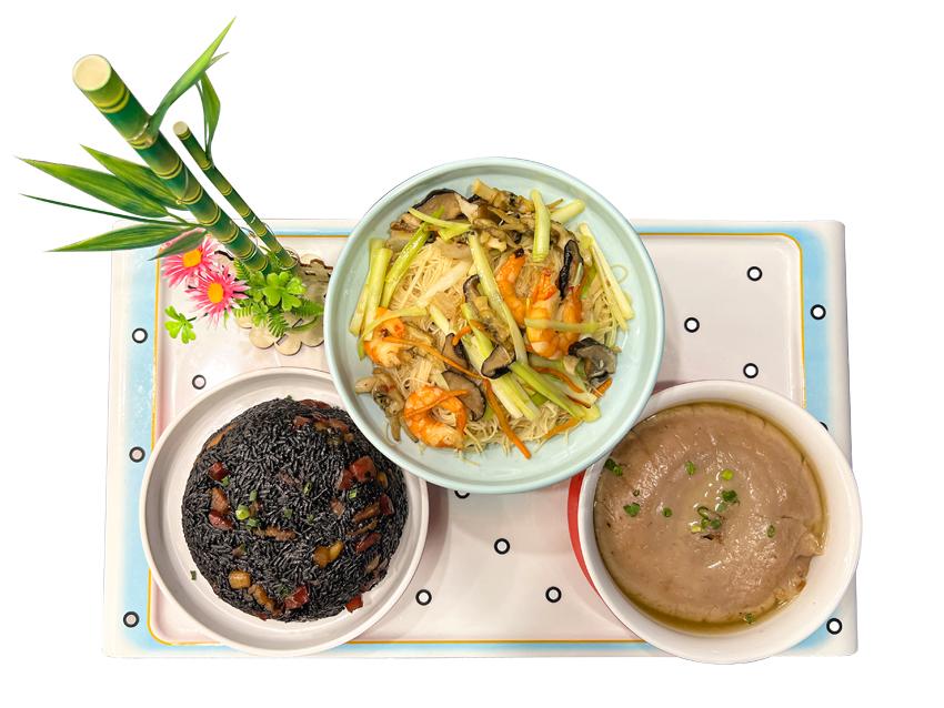 吉祥三宝—八宝芋泥、安溪捞面线、黑米饭