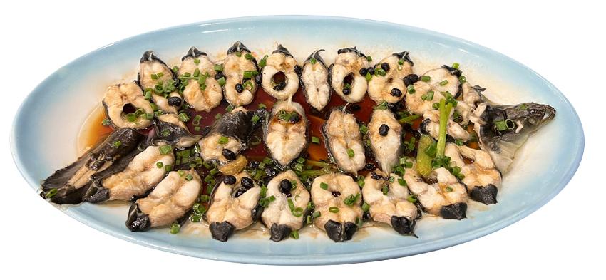 “漫步光阴——豉汁蒸河鳗”:河鳗灵动,寓意江湖闯荡的豪情;豉汁温存,是归家后的慰藉,每一口都是时光沉淀的醇厚滋味。