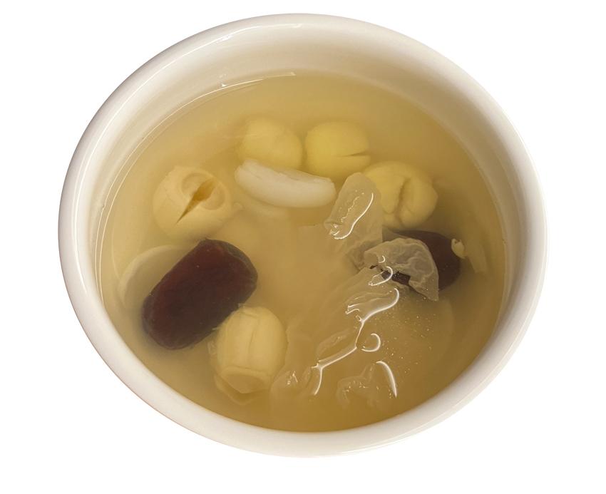 “头甜”菜——“百年好合”则是将莲子、百合、红枣、白木耳细细慢炖,煨出食材本真的甜润。