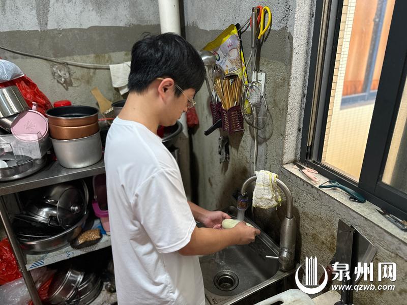 泉州网8月1日讯(融媒体记者 张雯 通讯员 尤怀恩 实习生 洪韦诗 文/图)在简易搭建的厨房里,18岁的何锦坤动作娴熟地翻炒着青菜。若不是仔细观察,很难发现这位在灶台前游刃有余的少年,右眼自幼完全失明,左眼还承受着1000度近视的困扰。