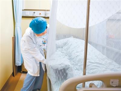 南方医科大学顺德医院的护士为患者整理床铺和蚊帐。新华社记者 肖恩楠摄