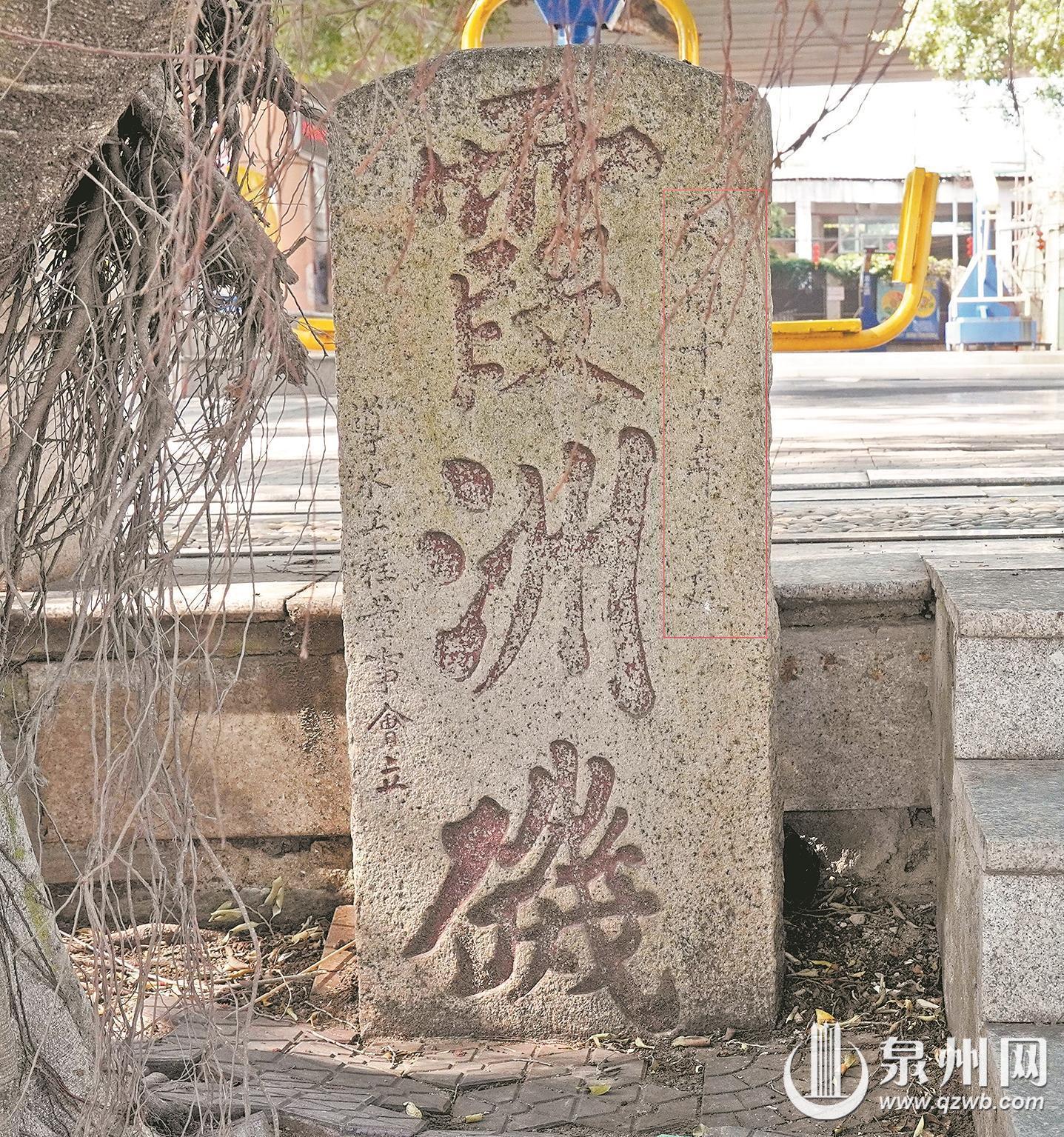 泉州网8月7日讯 (融媒体记者邱丰 通讯员郭阿娥 张宏 郑艺真 文/图)日前,鲤城区在开展第四次全国文物普查(简称“四普”)工作中,新发现晋江近代水利工程重要实物证据——霞洲磯(繁体字,即“矶”)石碑。1927年,泉州名士集海内外人力财力,通过在新桥与浮桥间晋江南岸建石护堤和导水坝(俗称“矶头”)治理水患。这是历史上有记载的第一次治理晋江下游水患的工程,霞洲矶石碑是为纪念其中霞洲矶头修建完成所立的。