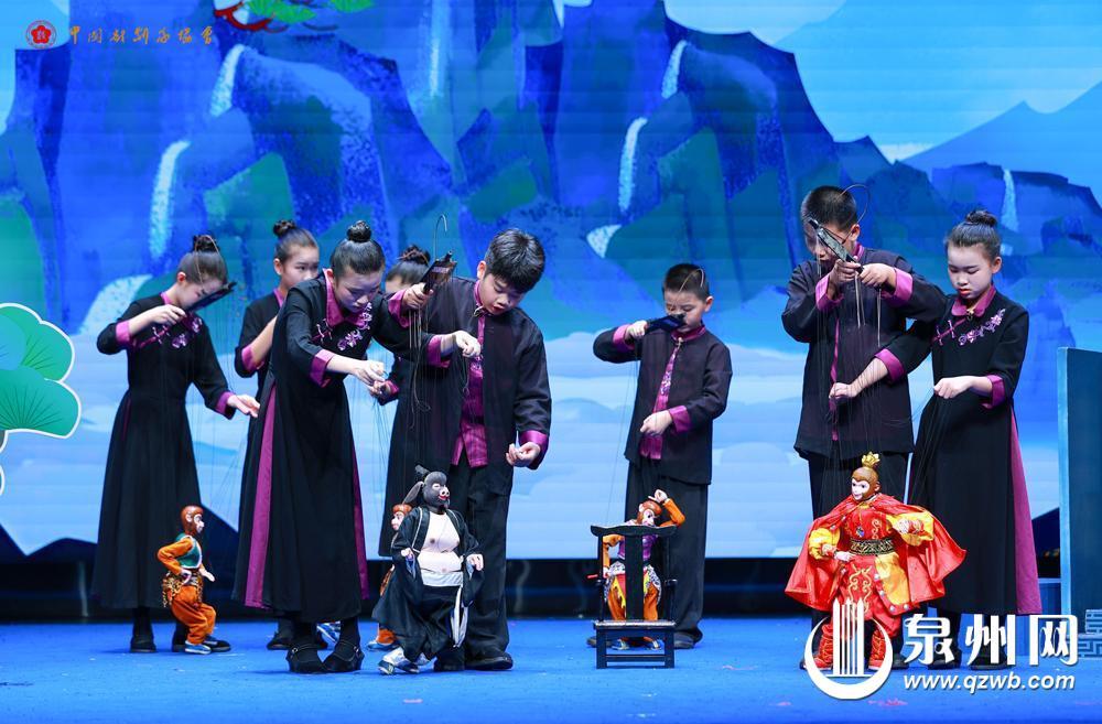 活动现场,泉州市通政中心小学凭借原创提线木偶戏《天蓬智请孙大圣》第三次摘得“小梅花”。节目取材于《西游记》,以天蓬元帅智请齐天大圣为主线,巧妙融入闽南压脚鼓、打击乐等元素。学生们在舞台上展现了娴熟的提线操控技巧,赋予木偶鲜活生命与丰沛情感,使传统故事焕发新活力。