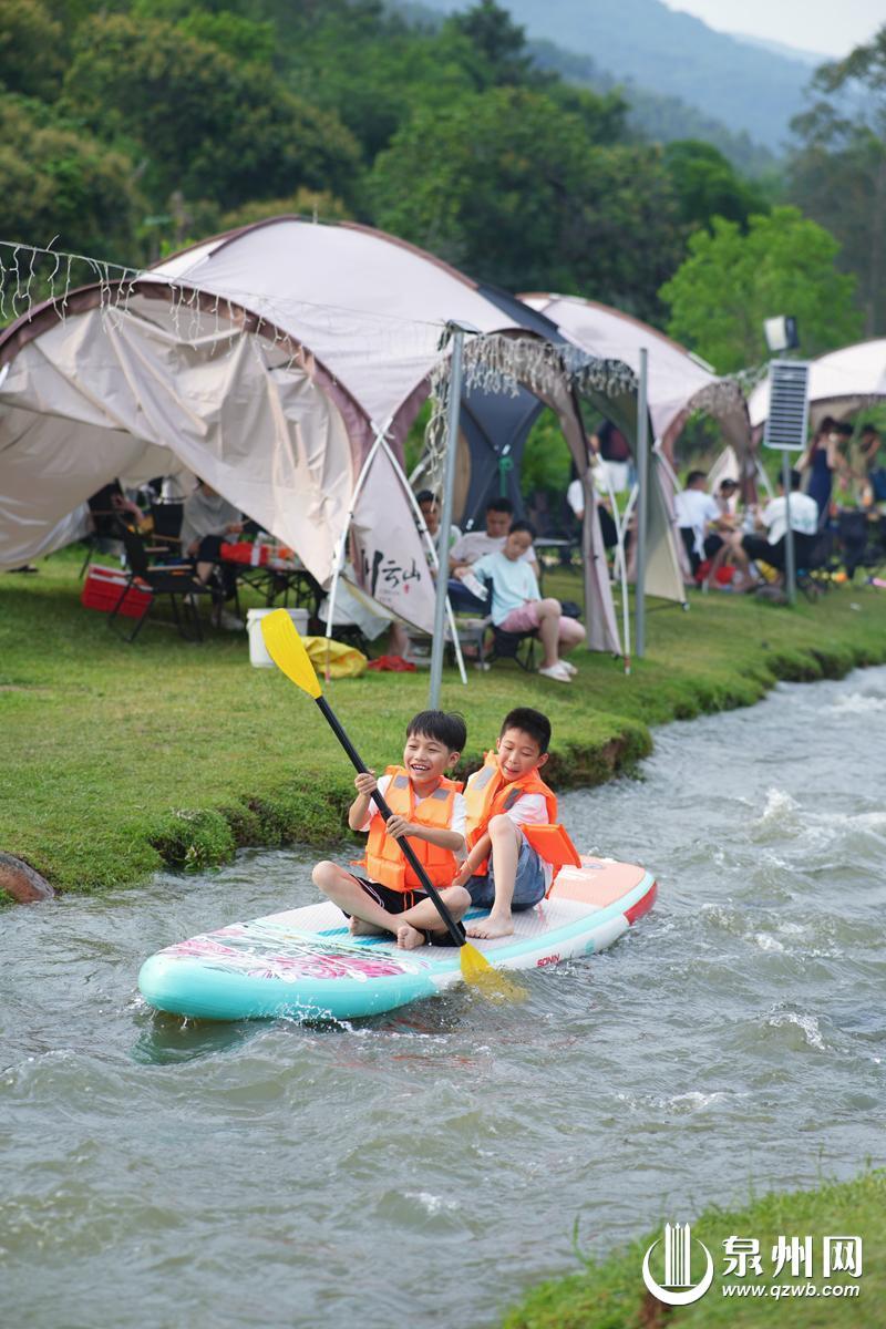 从泉州市区驱车不足1小时,就能抵达河市镇新告村的房车露营地。作为泉州首家房车主题营地,这里依托穿营而过的洛阳江东溪,从2017年“房车露营”1.0版本起步,沿溪而建,顺着河道走向树上观景平台、烟囱营地、草坪营地、鱼鳞坝营地等多样露营场景,同时配套农家土菜、柴火灶、团建自助餐、自助烧烤、路边摊点、冰淇淋自助售卖机等“可食地景”餐饮业态,形成“白天亲水、夜间观星、四季可游”的特色标签,从单一营地成长为热门的露营地标。暑期来此,不可错过鱼鳞坝上的“躺营”时光,竹制桌椅沿坝体拾级而设,游客可坐在清浅溪水中品茗畅聊;孩童们可沉浸式感受自然野趣,抓鱼虾、追蜻蜓、踩溪水,还可透过皮划艇等亲子项目尽情释放天性。
