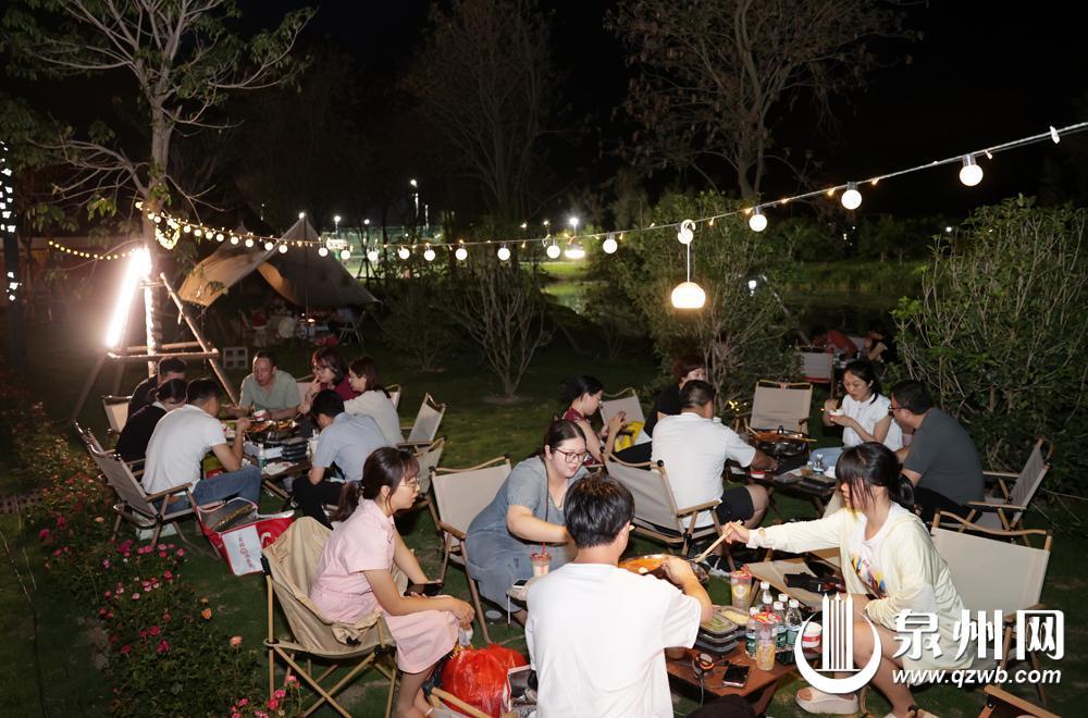 洛江区滨江生态绿地公园内,市民游客在星空下露营,拥抱微风和虫鸣。(张九强 摄)