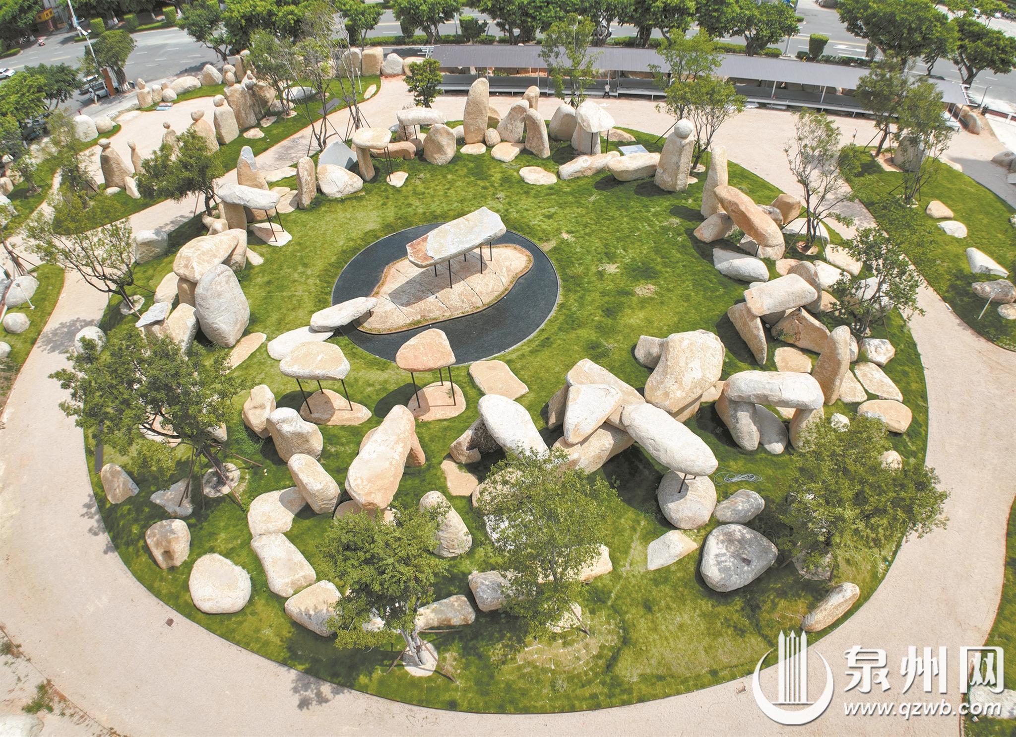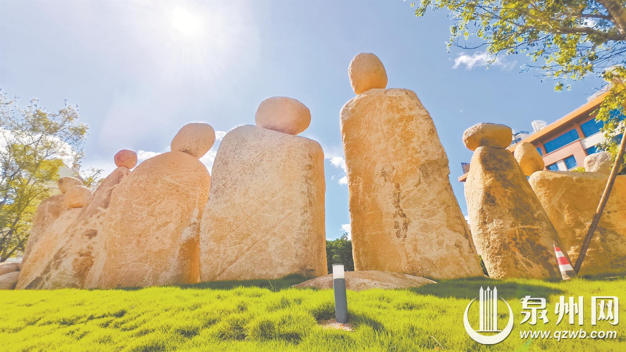 这处占地约25亩的巨石景观群,位于泉州市建筑服务产业园三期范围内。经过的市民可以看到,这些石头数量多、块头大,每块都保持着最原始的形态,或如春笋破土,或似拱门凌空,还有的结合钢管堆叠成各种形状。