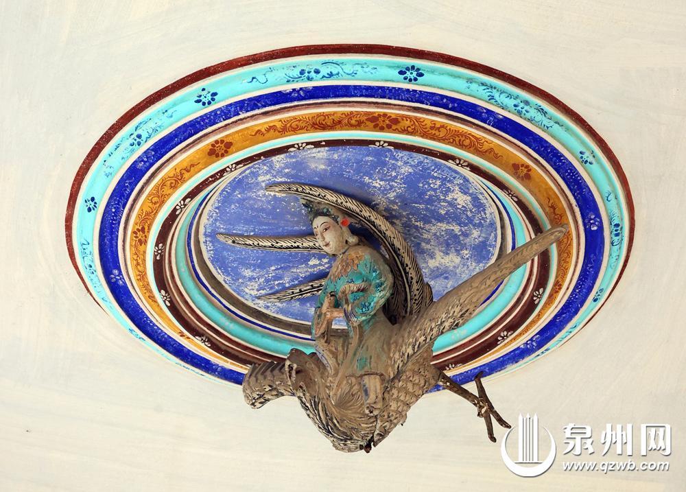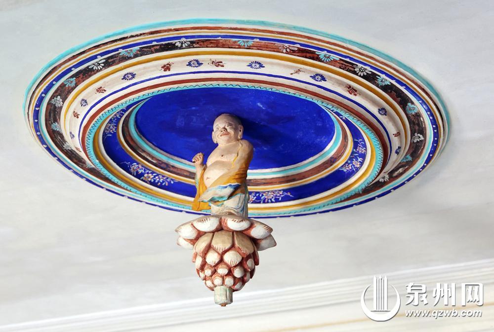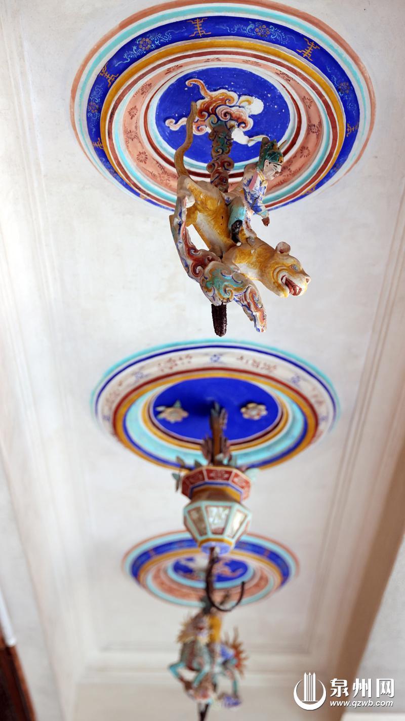 乘鹤仙女、骑马将军、凤凰齐飞、蝙蝠纹饰、天使降临、水果缤纷……走进散布在泉州各地的侨厝,只要略微抬头,往往就能看到在天花板上悄然绽放的“灯花”。它们,是灯背后的亮丽底色,既彰显着建筑艺术与主人审美,更是华侨乡愁的无声注脚、跨越山海的精神图腾。