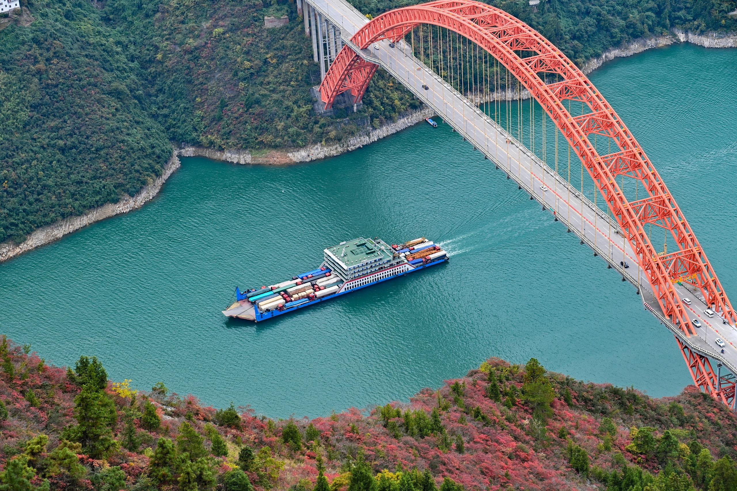 △货轮航行在长江巫峡段水域