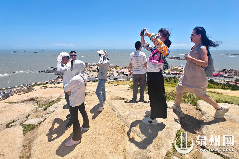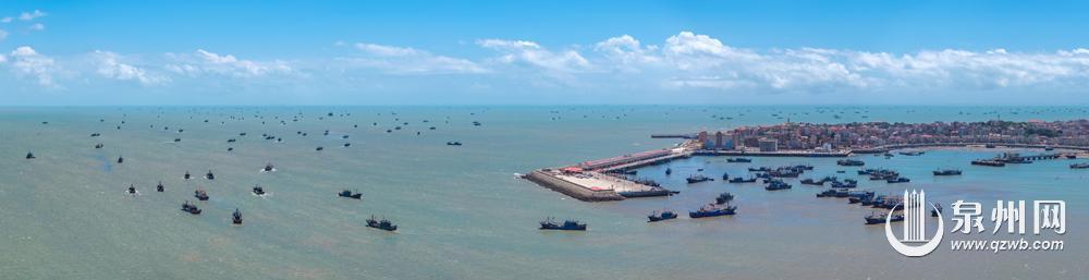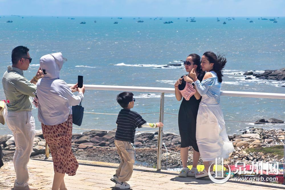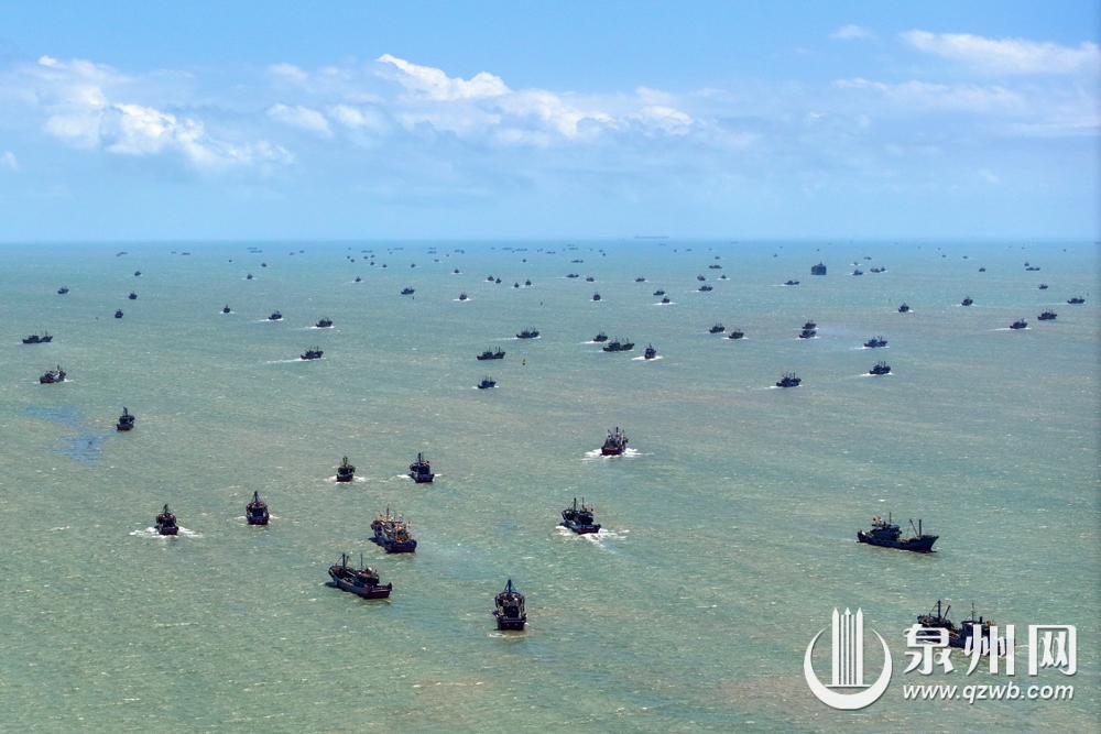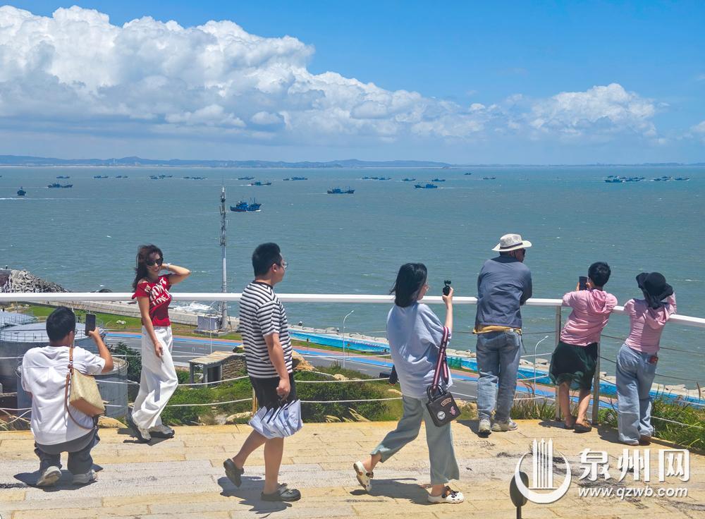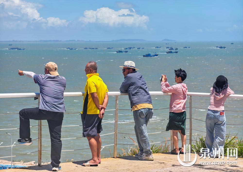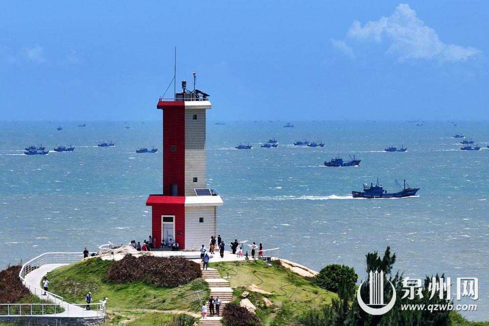 8月16日12时起,泉州市伏季休渔期结束,渔船纷纷出港,奔向辽阔的大海,开始捕捞作业。在石狮,不少人登上灯塔公园高处,遥望渔船出海,拍下纪念美照。(融媒体记者陈起拓 摄)