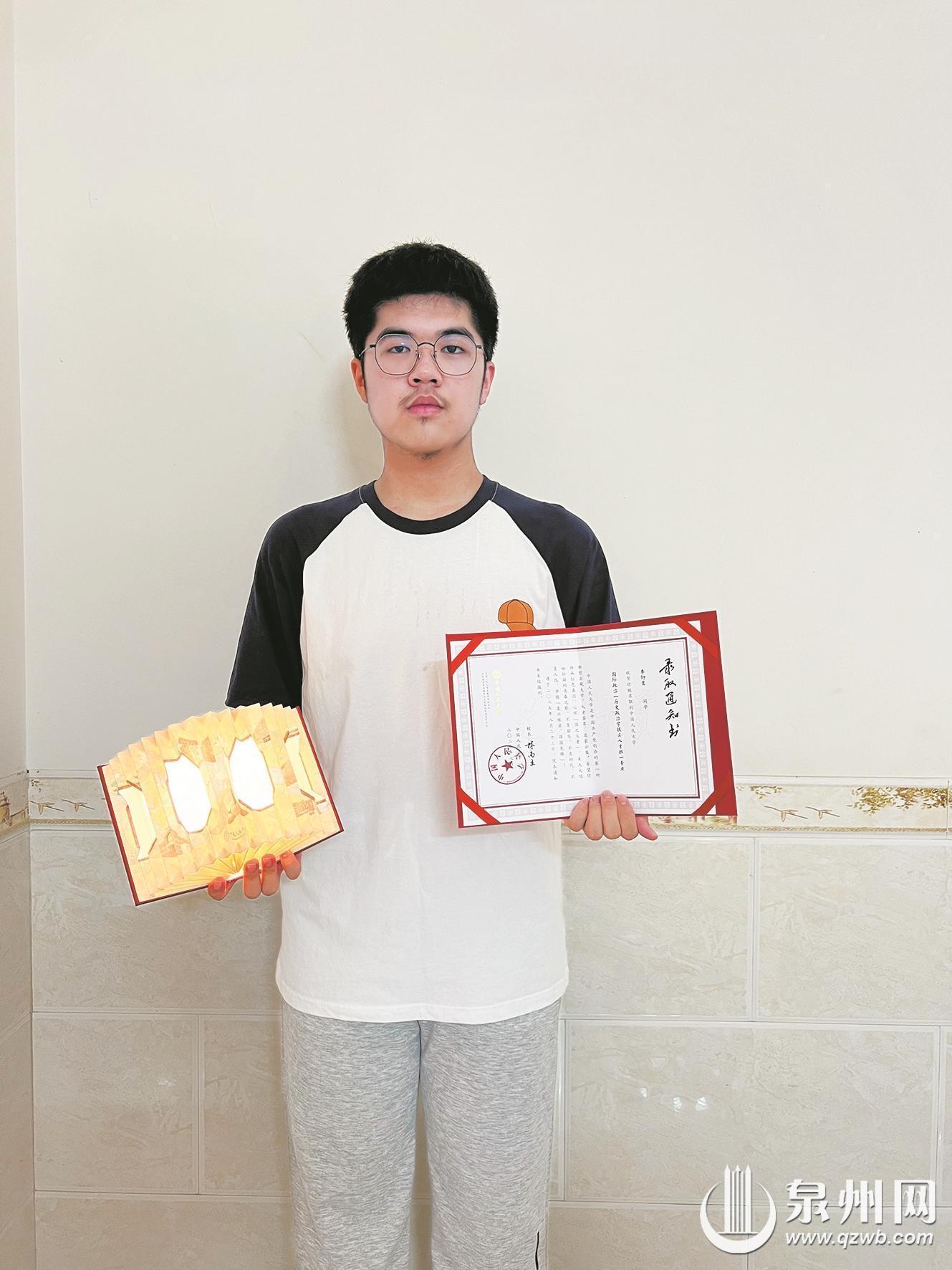 泉州培元中学高三毕业生李仰嵩,已被中国人民大学历史政治学拔尖人才班录取。收到通知书的那一刻,他内心充满了难以言喻的欣喜,“庆幸自己当初有坚持不懈投入的毅力,也为能进入学术底蕴如此深厚的优秀平台继续学习而高兴。”在专业选择上,李仰嵩坦言自己经历了一个深思熟虑的过程,“虽然最初对专业方向并不十分明确,但经过对学术兴趣、个人特长以及未来发展的综合考量,我确信这是最适合我的选择。”他表示,未来将充分利用人大优质的教育资源,继续保持高中阶段的韧劲,在新的道路上不断探索、精进。