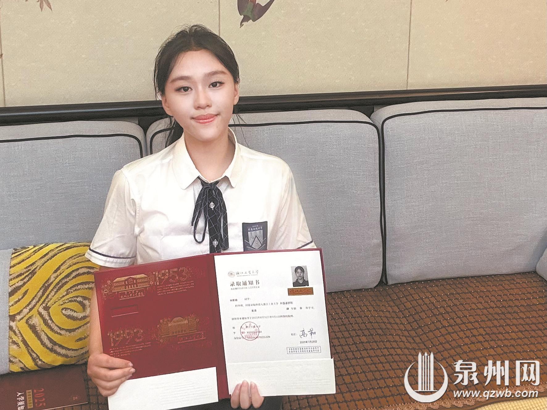 泉州城东中学毕业生林斯瑜,已被浙江工业大学英语专业录取。她回忆起从快递员手中接过厚实信封的瞬间,感慨道:“当时就有种特别不真实却又格外踏实的感觉,是‘终于等到你’的心情。”她坦言,“那些挑灯刷题的夜晚、考试时的紧张忐忑,现在看来都值了!”