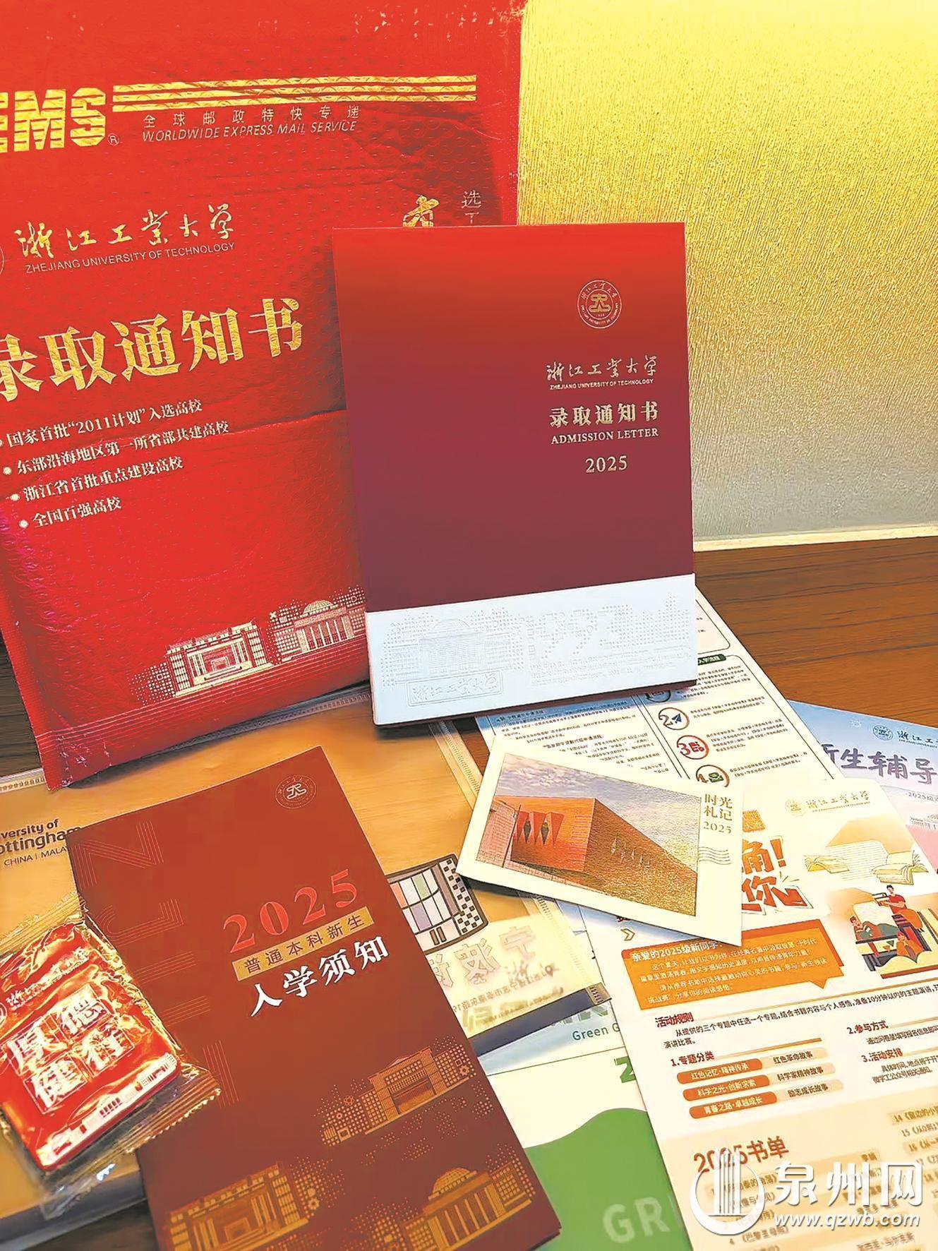 泉州网8月18日讯(融媒体记者 洪娜娜/文 受访者/供图)近期,泉州学子陆续收到了一封封承载着青春梦想的高校录取通知书。今年,各大高校在录取通知书的设计上“各展花招”,每一处纹样、每一段文字都凝练着校园的文化底蕴与办学特色,更藏着对新生的热忱祝福。不妨循着泉州学子的指尖,一同拆开一份份写满憧憬的“梦中情书”,解锁藏在纸页间的惊喜与远方。