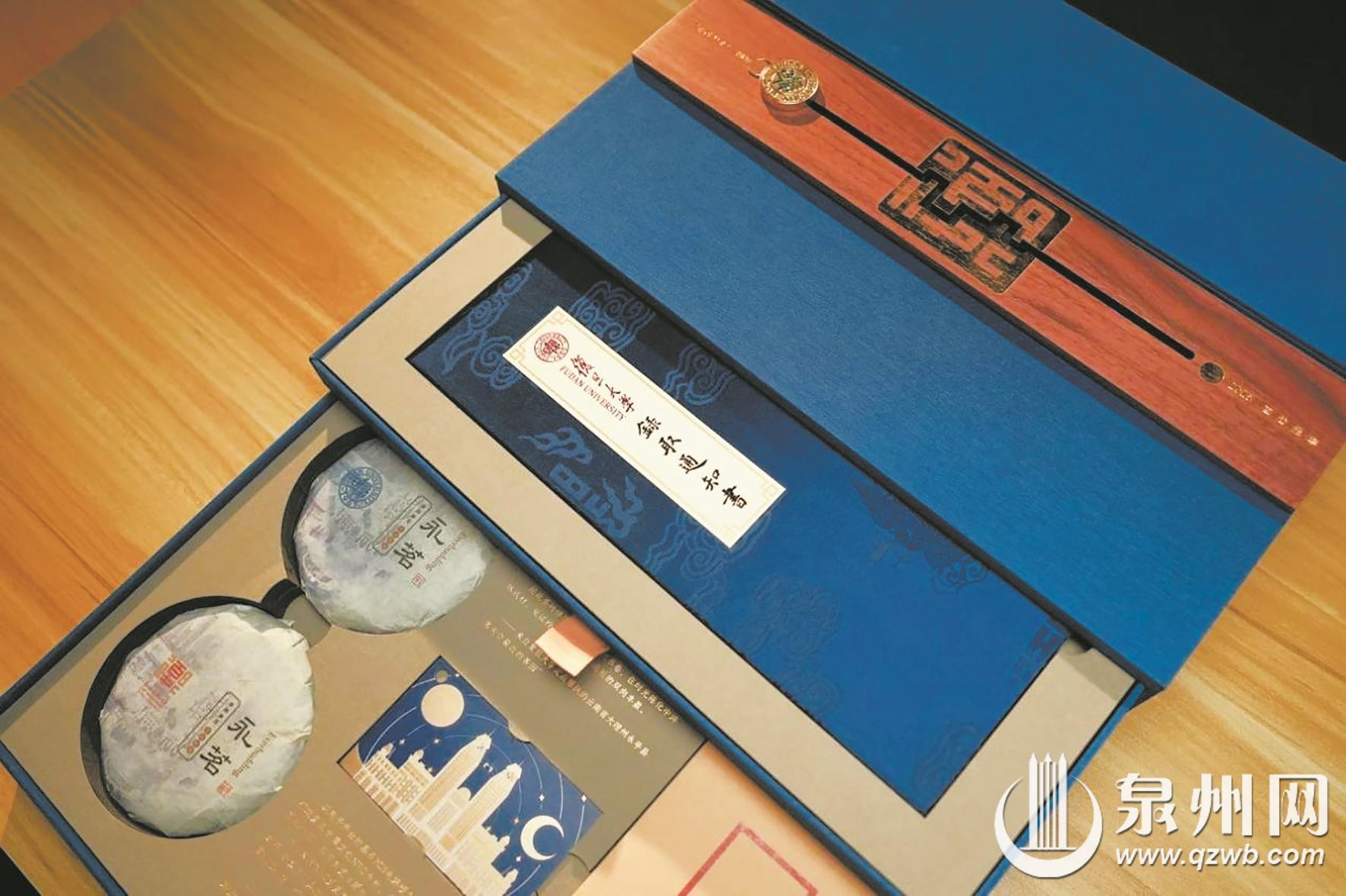 复旦大学今年的录取通知书以建校120周年为主题,采用中国传统书匣为设计灵感。礼盒选用典雅的复旦蓝为主色调,外覆温润绒布。磁吸式机关开启后,上层可见潞绸封面的录取通知书,通知书封面创新演绎传统“龙凤戏珠”图案,寓意代代复旦人守护学术明珠;内页延续使用复旦科研成果“开化纸”,今年新增防伪水印。而下层则精心放置着两枚“永茗”茶砖、沉金工艺NFC卡片及书信。60克茶砖拼成“120”校庆图案,原料来自复旦定点帮扶的云南永平县。其中,红茶寓意为“分享”,邀学子与亲朋共品录取之喜;白茶取“珍藏”之意,可经年存放,待未来人生重要时刻回味。随附的还有文创NFC卡片,采用电子产业基础材料PCB电路板为载体,辅以沉金工艺,只需用支持NFC功能的手机轻触,即可点亮光华楼星光图案,并直接跳转至《新生入学报到手册》页面。