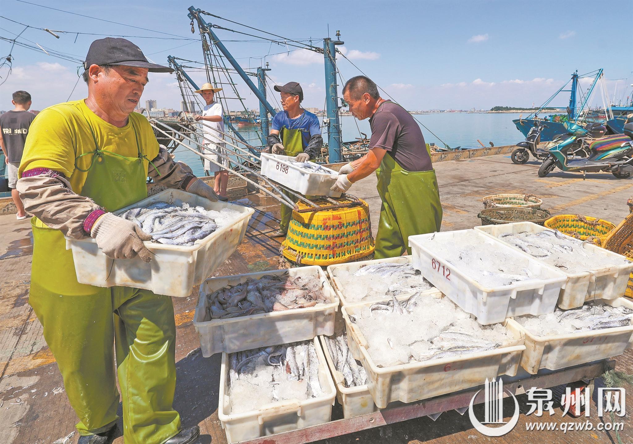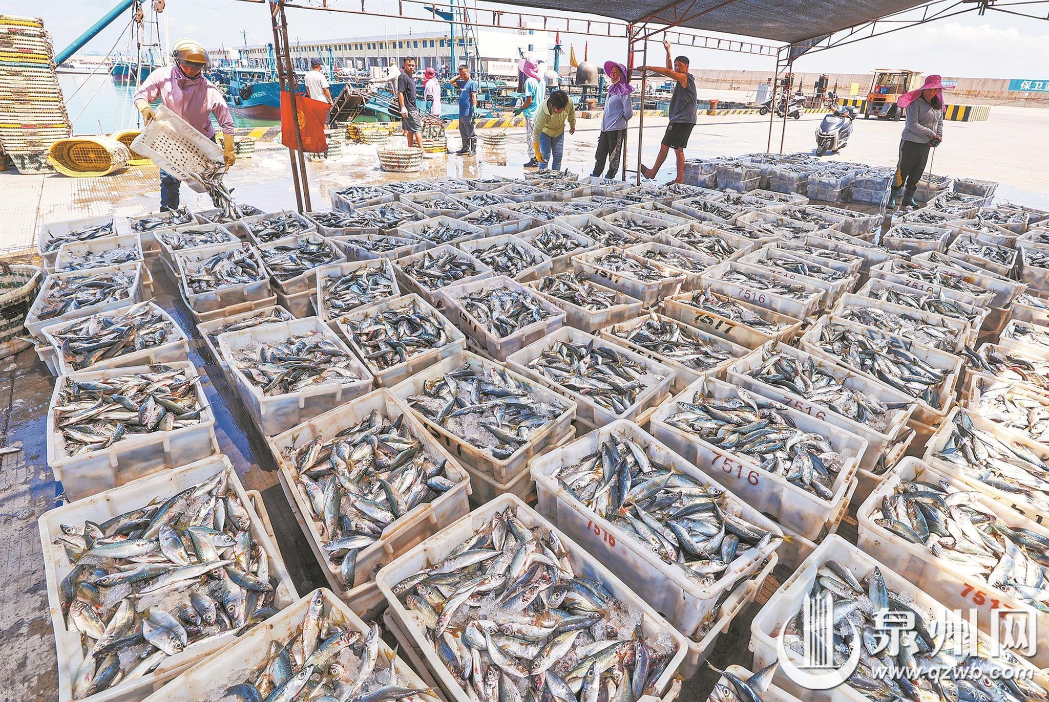 开渔季,随着首批渔船满载而归,沉寂三个半月的石狮祥芝国家中心渔港又热闹起来。石狮渔民迎来“开门红”,马鲛鱼、梭子蟹、明虾等生猛海鲜让早市沸腾。接下来几天,更多大渔船将陆续完成“第一网”捕捞作业,各种“虾兵蟹将”会源源不断地运回,市场上海鲜的价格也将逐步走低,开渔“第一鲜”将陆续摆上市民的餐桌。 (融媒体记者 王柏峰 摄影报道)