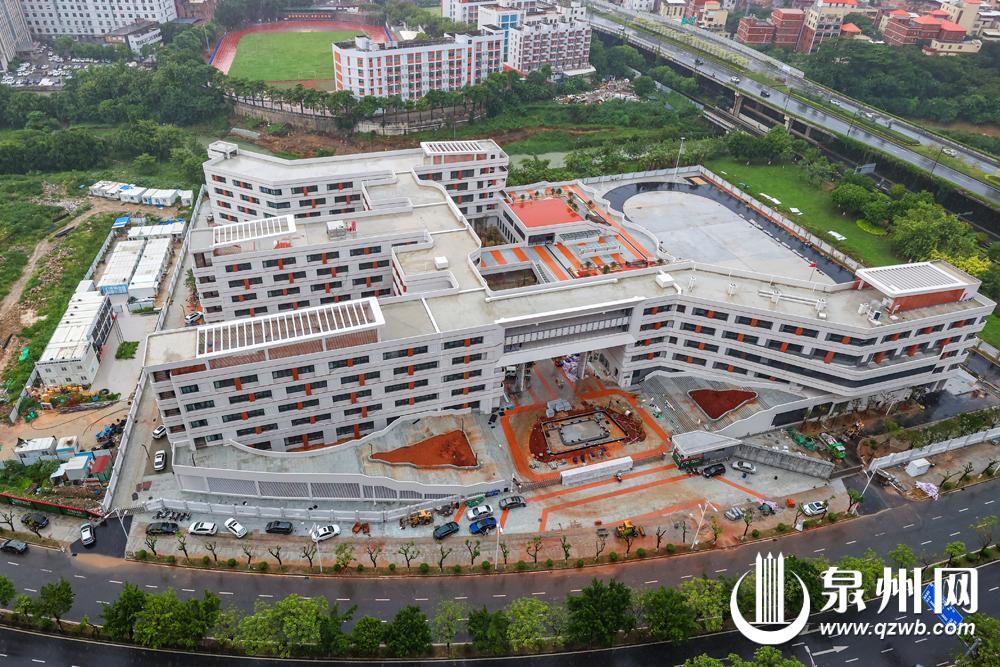 泉州市一批新建校园将于新学期正式投用,推动教育基础设施提档升级。昨日,记者在位于晋江池店镇溪头村(江滨中学北侧)的泉州师范学院第三附属小学崇德校区项目建设现场看到,主体建筑内外装修已全部完工,操场及跑道施工进入收尾阶段,将于今年9月正式投用。