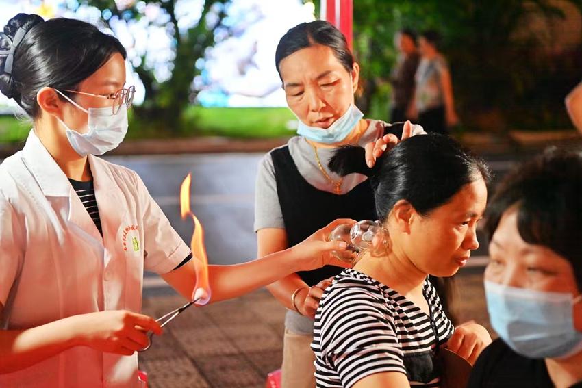夜市里,人来人往。义诊区,资深中医专家们为市民把脉问诊,以丰富的经验和精湛的医术,为闻讯而来的市民细致分析病情、提出健康建议,帮助排除健康困扰。理疗体验区“人气爆棚”,推拿、拔罐、艾灸、耳豆等项目让市民们亲身感受中医理疗的神奇功效。小儿推拿专区尤其受家长和孩子们的欢迎。