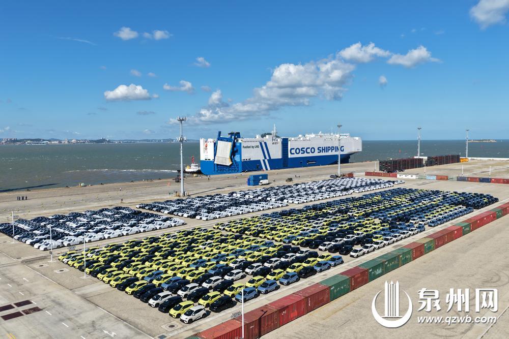 8月16日,泉州港石湖作业区6号泊位,1074辆比亚迪新能源汽车依次驶入中远海运特运“海河口”轮滚装船,并于第二天启航前往比利时、挪威等欧洲国家。这是泉州港首次实现新能源汽车整车滚装出海,开辟了首条“泉州—欧洲”滚装航线,全程约1万海里。