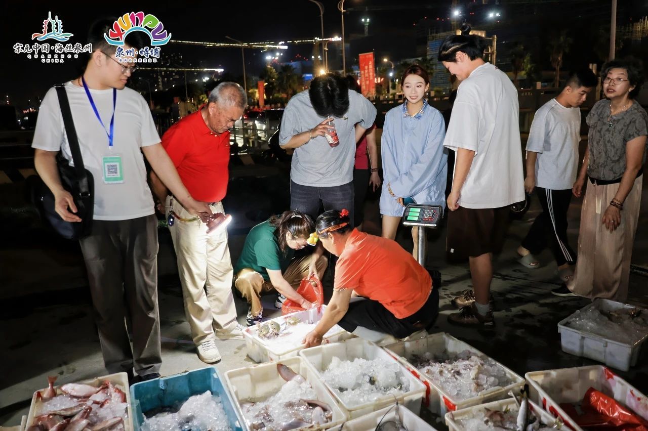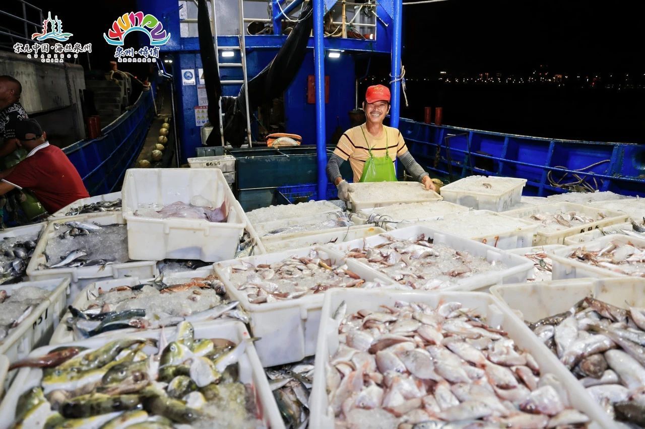 在渔人码头特意设置的镂空拍照框前,远洋渔船披着星光、载着渔获缓缓驶过,仿佛一场天然的海上时装秀。市民游客纷纷举起手机,记录下渔船“走秀”的动人瞬间——这是专属于蟳埔的浪漫,也是今年开渔季最具创意的“最美舞台”!