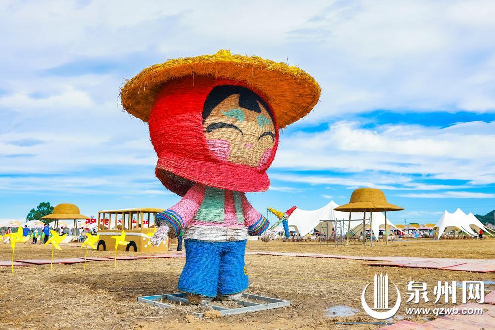 稻田艺术展中的惠安女稻草人艺术装置